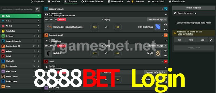 A aposta 8888Bet Login oferece aos jogadores a experiência mais conveniente de apostas em eSports!